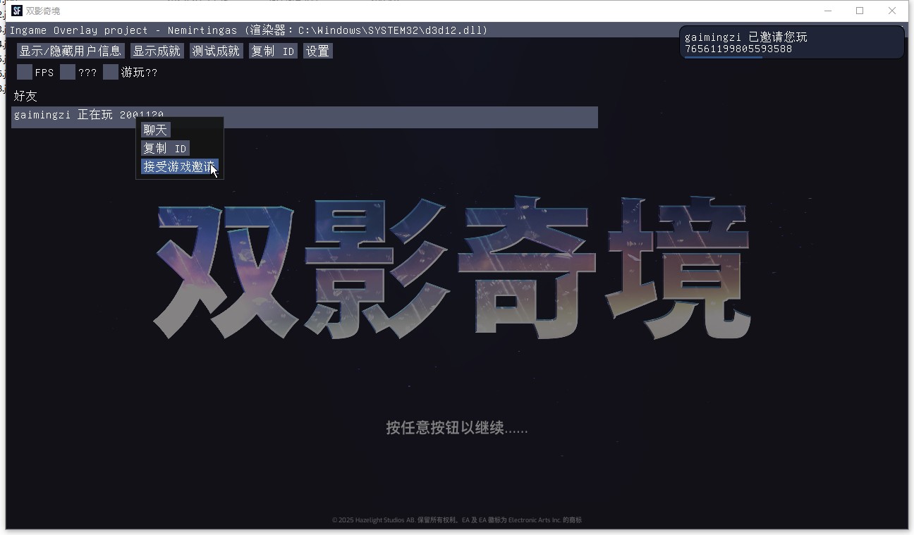 2). 平台载入:\Split\Binaries\Win64\SplitFiction.exe启动。