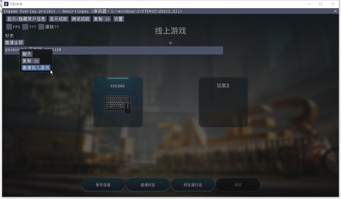 加主机:游戏右上角看到好友邀请信息——同时按Tab+Shift键呼出联机窗口——选择好友右键,接受游戏邀请——等待主机开始