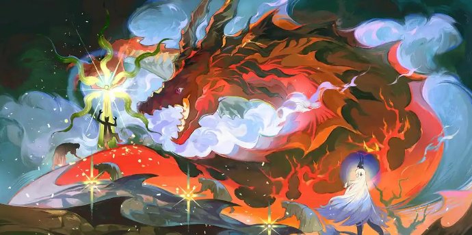 盘踞于原野之上,永不离去的红龙先祖,亦或只是众心所向的还火之地。新火不断被抛掷于旧火之上,一切终结,同时一切诞生。