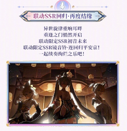 全新联动原创曲即将上线,熟悉的歌声再次唱响平安京!联动限定SSR初音未来即将限时回归!