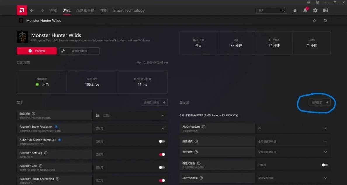 进入AMD Adrenalin驱动软件,找到“全局显示”选项。