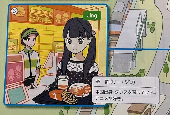 这个二次元妹子叫作李静,是日本某版教科书中的人物,设定为中国留学生。