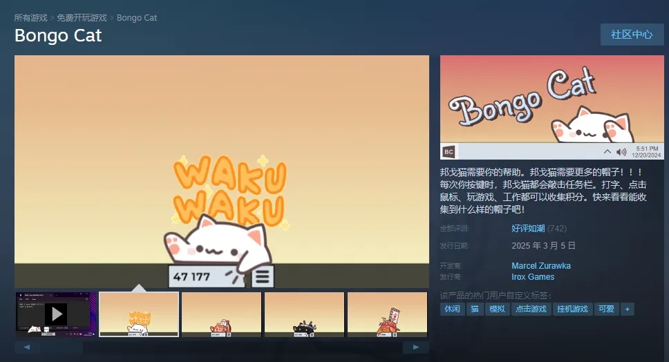 为什么我要先聊这个前提?因为这段时间,邦戈猫再次回归大众视野,只不过这次它是以桌宠游戏的身份登录了steam,好评率更是达到了96%好评如潮。