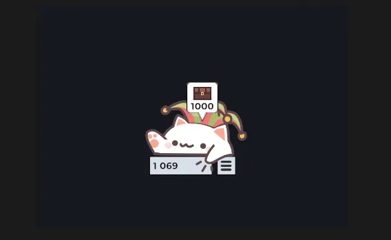 当你启动游戏的时候,它就会出现在任务栏上,你可以随地调整它的位置,每当你点击一下鼠标或者敲一下键盘,猫猫都会做出标志性的拍打动作,下方的数字都会随之增加,每隔30分钟猫猫就会生成一个宝箱,需要我们用1000点数来开启。