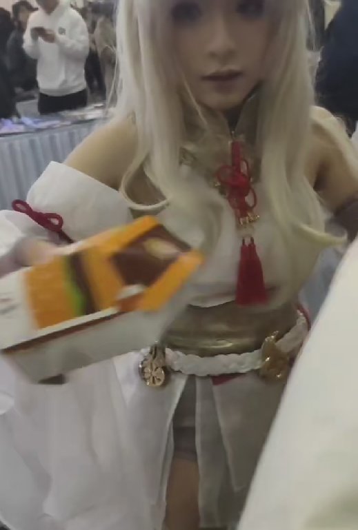 结果我点开视频一看:著名Coser兔娘老师正在漫展现场给粉丝发麦当劳......原来是这个发福利啊.....(注:兔娘老师倒不是福利姬,人家是干正经Coser的。)