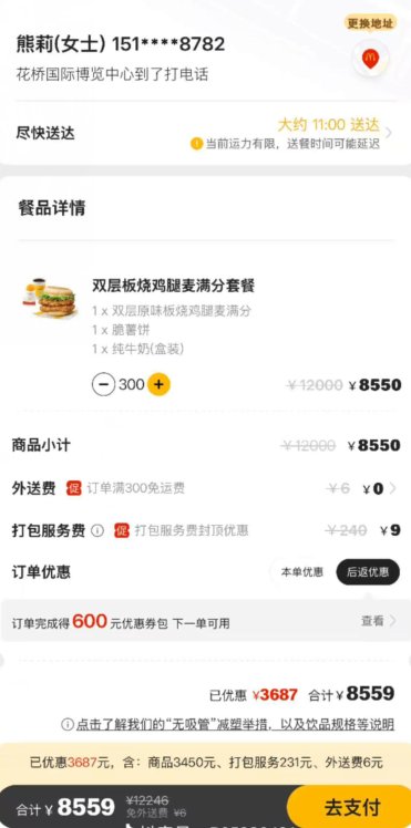总之在得知许多粉丝远道而来,却没有拿到签售号之后兔娘就想,总不能让别人白来吧,于是就点了300份麦当劳(后来不够又加了200份),据说是一共花了1万4千块。(兔娘当天出场费大概在5万以上,到手大概3万)
