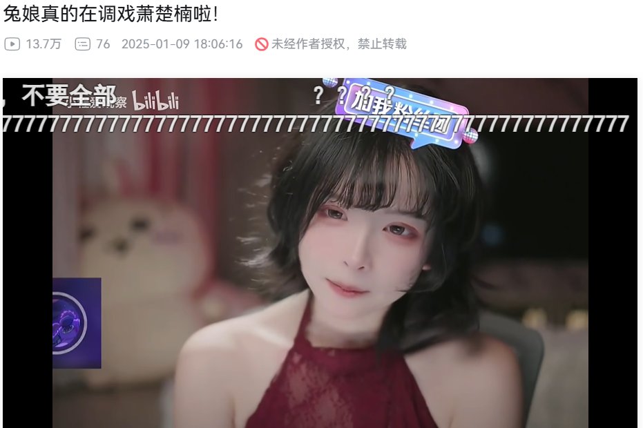 不过你要说兔娘完全是靠自己火到这个程度的,我觉得也不大可能。毕竟在这个信息量爆炸的时代,个人可能百万粉就顶天了,想做到千万粉是必定有机构推流的。就比如与阿达西的连线剧本,就是其中一环。而“调戏萧楚楠”之类的梗大概率也是树立的人设。