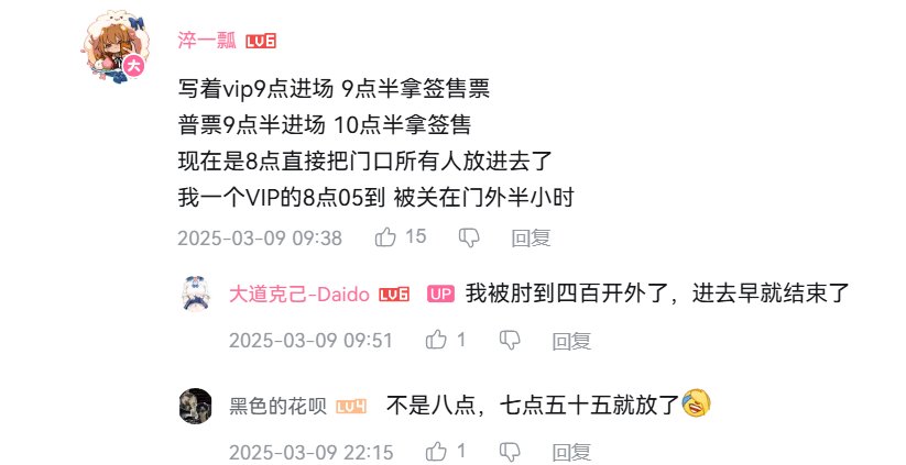 这事的起因是这样的,上周末(3月8日-9日)昆山有一场漫展,请了兔娘等Coser去当签售嘉宾。结果因为主办方的操作不当,导致许多买了VIP票的粉丝都没抢到签收名额,其中不乏很多都是从外地赶过去的,又累又饿一早上结果白来了。具体可以看下图,是看当事网友的描述:
