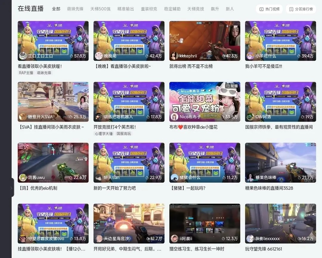 >进入虎牙官网,搜索“守望先锋”,进入守望先锋专区。