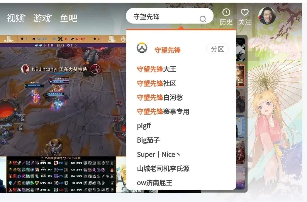 >进入斗鱼官网后,在右上角搜索“守望先锋”,进入守望先锋专区。