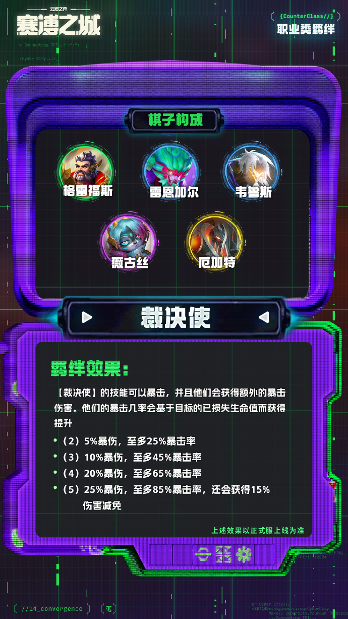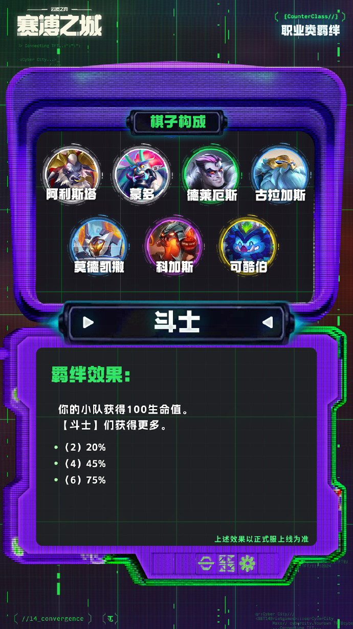 云顶之弈即将迎来s14赛季赛博之城,在这个赛季将会上线全新的职业羁绊,那么大家知道职业羁绊究竟是怎么样的呢?下面快跟随多特小编为大家带来的云顶之弈s14职业羁绊吧。