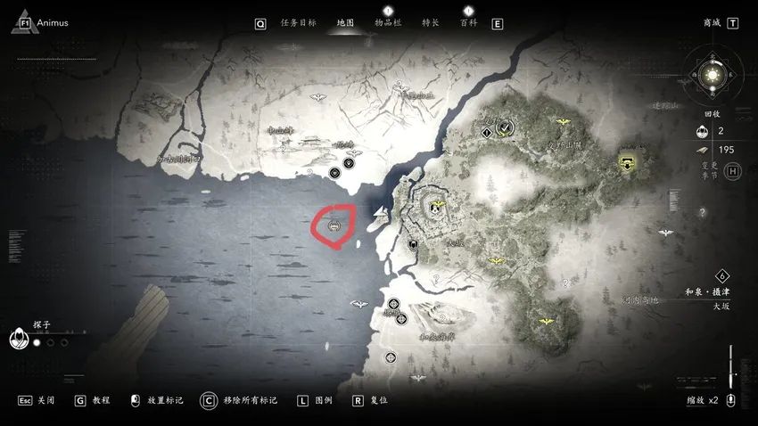 你可以在地图上找到标记点,大致位于大阪门口海域。(如下图)