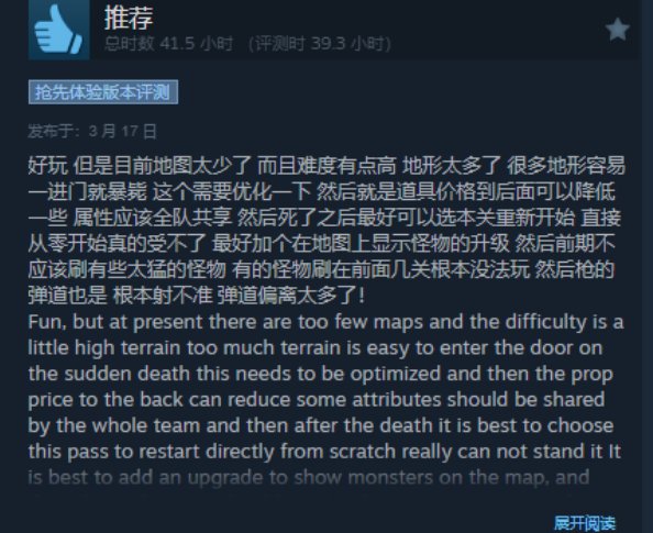 不过毕竟现在是EA版,问题还是挺多的,像是没有官方汉化啊,加速器有时候会不稳啊,有些地形太容易暴毙啊,后期有点堆怪啊什么的,但是总体来说都无伤大雅。