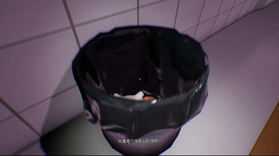 接下来的发展还用想吗,不会真有人傻呆着不动等20分钟吧,我直接一手拾取,随后这位创造者也只是随便说了几句,便开门让我们前往下一个地点,当然我们自然是可以把玩具带到下一关的,而且不知道是不是设计好的,在它说完“把它放下”这句话后,玩家正好会停在一个事先准备好的垃圾桶面前,如果你把玩具丢进垃圾桶里,它还会对你发出谴责。