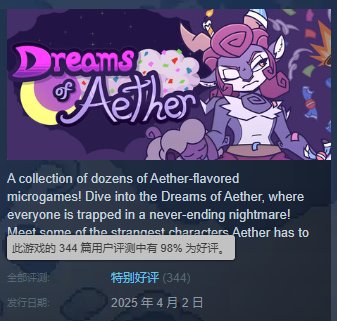 兄弟们,Steam喜加二了!好评率98%的《以太之梦Dreams of Aether》原价15,3号凌晨1点前点击即可免费入库。这是一个街机小游戏合集,画风简单,流程较短,但好在并不无聊。除此之外,原价22的《三姐妹Three Sisters》也可以在5号凌晨1点前免费拿下。这是一款超现实的角色扮演游戏,官方表示游戏内完全没有恐怖要素,可以轻松愉快地体验剧情,但从游戏预告片来看并非如此。比较可惜的是,这两款游戏都没有中文语言,想要练习英语(?)的朋友抓紧时间入库吧!