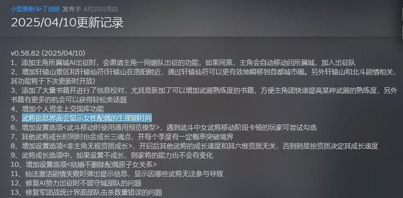 最乐的是,在游戏发售初期,不少玩家都表示自己明明都已经行了房事,但老婆就是没法怀孕,搞得很多人要不只能挨个日子试,要不就是上论坛问有没有女武将的生娃时间表。