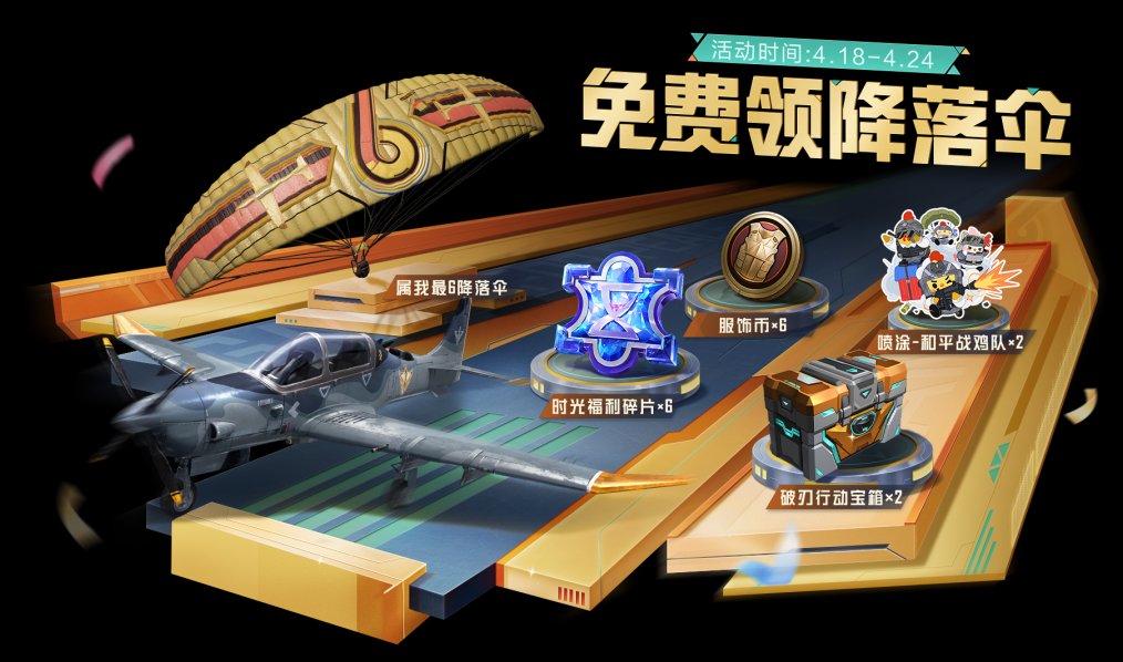4月18日-4月24日,完成指定任务收集“燃油” 抢占黑刃组织基地、军械库、新载具等,累计进度可获得属我最6降落伞、服饰币、时光福利碎片等奖励。