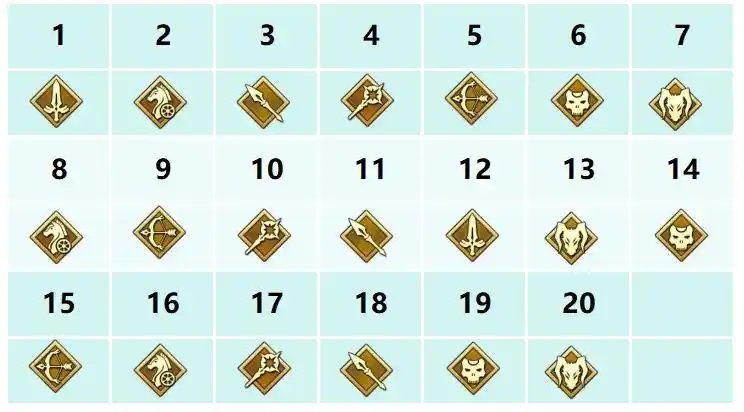 以上是每天开启的关卡职阶顺序,对应的职阶配置和掉落都跟第一张图是一样的,大家如果不想刷太多,或者只想单独刷某种材料,就等那个关卡轮替到再刷就行了。