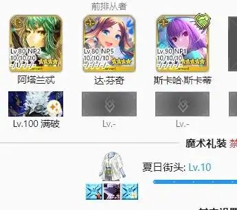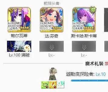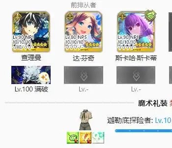 下面是每个关卡的一些组队参考,考虑到关卡的难度,这里尽可能不让自己使用大拐,输出也尽可能采用平时没怎么用到的低星或者是绿卡输出,可以多挖这些从者的牵绊石头,也尽可能不换人。