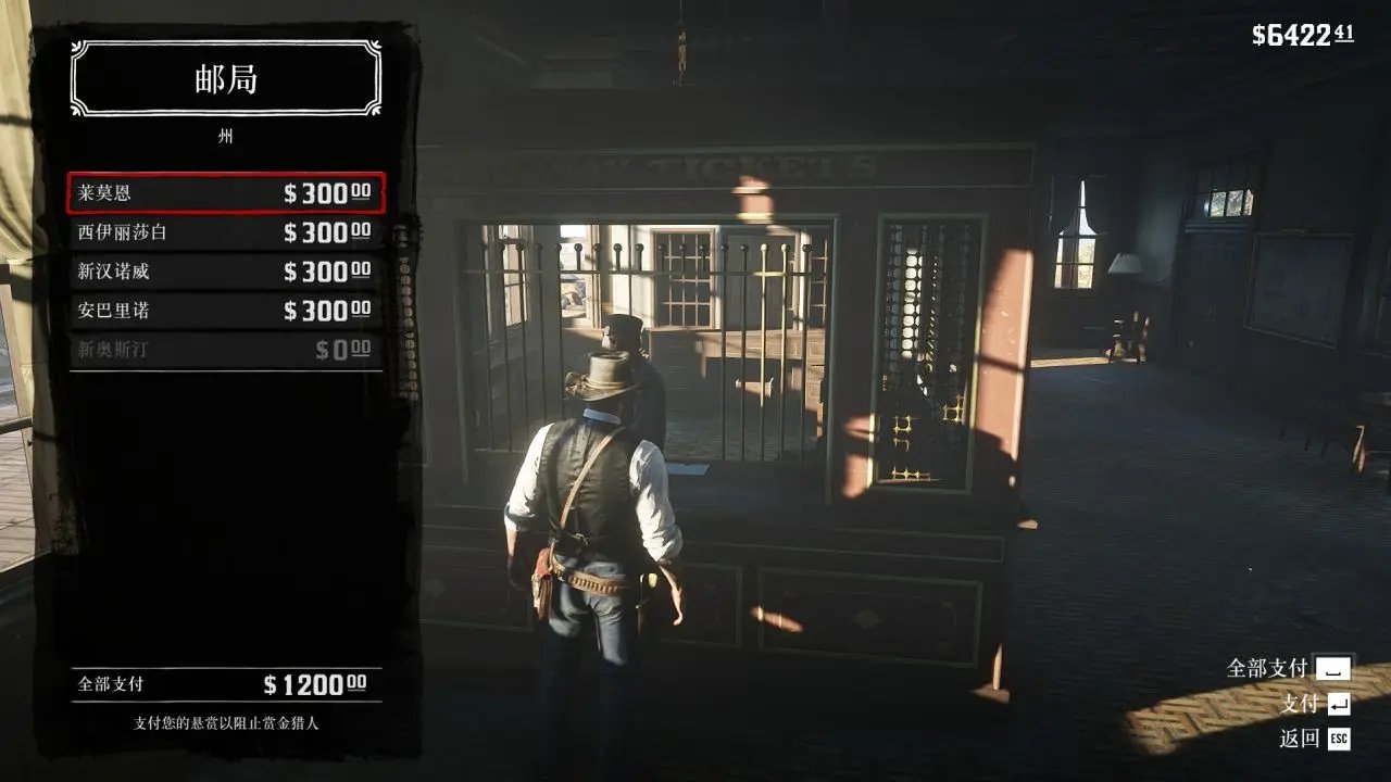 1、荒野大镖客2有五个大洲,每个州的悬赏是互不关联的。