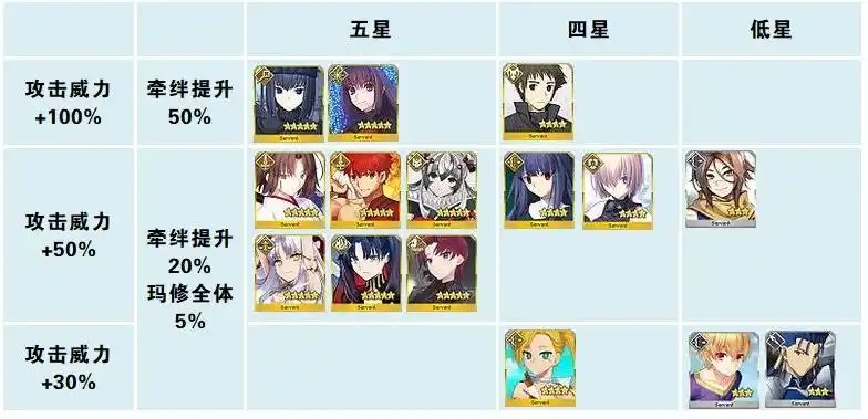 以上是本次活动的加成从者,如果有仇凛或者卡莲的话,可以在本次活动刷大部分怪异本。