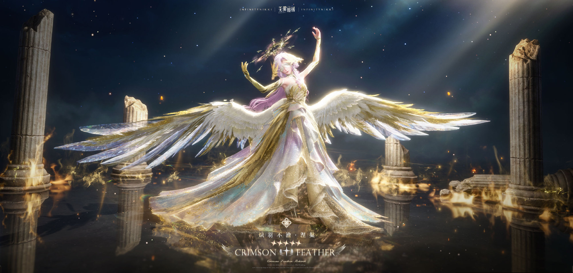 「炽羽不渝」进化后分别为套装「炽羽不渝·落羽」、「炽羽不渝·焚风」、「炽羽不渝·涅槃」。套装焕新完成后可获得「炽羽不渝·冰刻」。