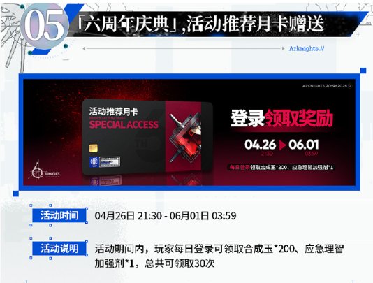 「六周年庆典」,活动推荐月卡发放