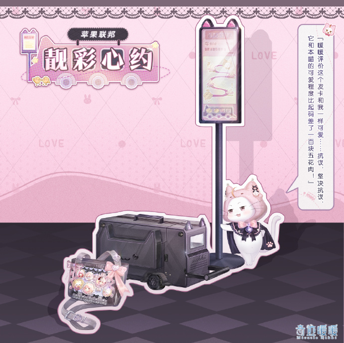 4月29日—5月8日,过关指定公主级关卡额外掉落部件“奇喵发卡”,使用奇喵发卡制作设计图,收集暖喵旅程主题套装【靓彩心约】!