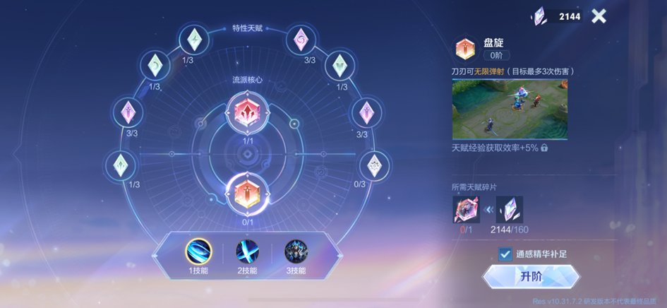 玩法技巧:单个技能点满3个「特性天赋」时,会奖励1个「流派核心」!