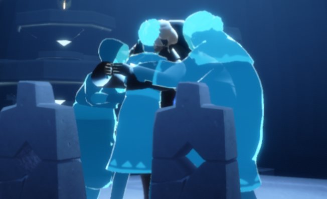 2、飞到先祖的台子上开始任务,先是找青鸟羽毛,一共有3片羽毛,每片羽毛一个动画,看完动画,和npc牵手,将他带回先祖的平台。