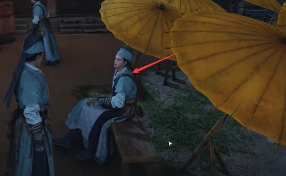 4、黄色的伞后面找到NPC【月牙】往前面出去来到房子背后;