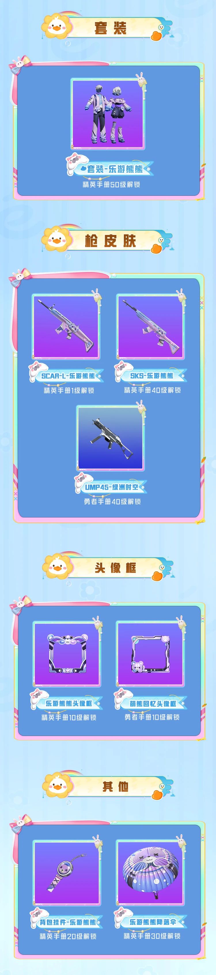 除此之外还能获得限定乐游熊熊套装、枪皮、喷涂等丰富奖励~
