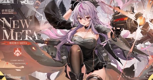 基础巡游奖励:格伦维尔·META,这次的大月卡推出的META舰娘,实话实说,算是属于那种比较偏冷门的类型了,估计不少玩家都想不起来这妹子了,这是鲁莽亲妈笔下的女儿,画风相当的细腻,就是可惜人气差点意思,这次的META的造型看起来整体的人设变化不大,就是换了一身黑色的衣服。