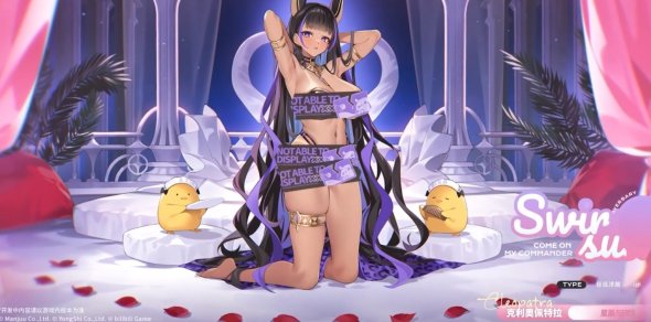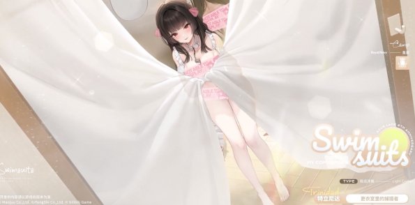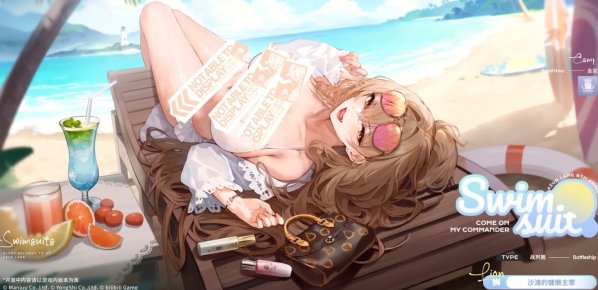 特拉法尔加-「海风与夜语」,这款走的是夜晚、泳池、吊床的设计,把舰娘的胸口,豚,还有脚底都给到了特写,算是相当懂人心了。