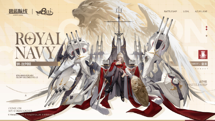 设定上她属于是皇家所属的战列舰,是位既高傲又喜爱可爱之物的狮子淑女。她高呼战吼挥剑而起,像雄狮般勇猛地奔赴战场。为撕碎敌人守护同伴、为扩张领土、更为用荣光胜利装点你与她的武道之路——