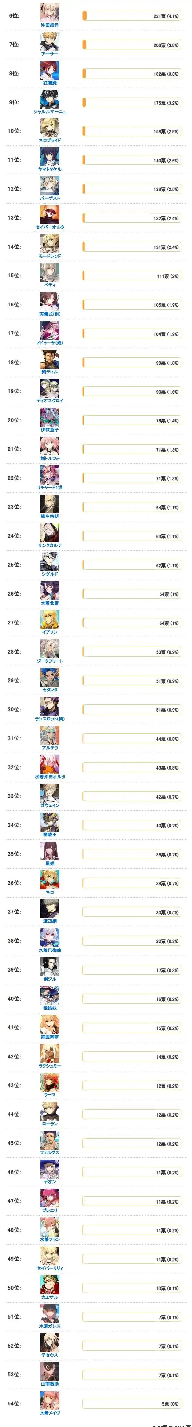 下面看一下其他剑阶从者的得票情况: