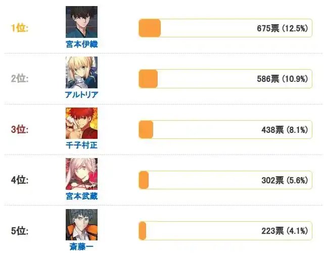 第五名是斋藤一,这算是有点意料之外的前五了,不过斋藤一本身人气较高,而且唠唠叨叨卡池在日本的人气也都比较高且年年复刻,有满配斋藤一的御主应该也不少。