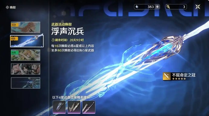 要说下位替代,也不是没有,常驻五星讯刀能用,但是对比专武也就是达到70%左右的强度,目前强度表现方面最接近卡提希娅专武的五星武器,只有椿的专武,那么问题来了,椿的强度众所周知,你把椿的专武薅了,那椿用什么?考虑到鸣潮武器卡池本身不会歪,而且入手成本不高,所以还是比较推荐整一个的。