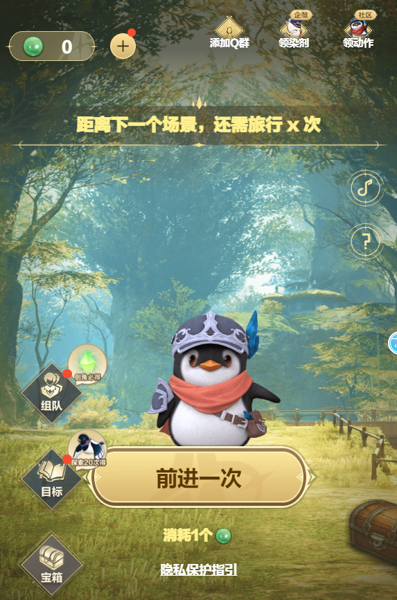 2、活动期间,通过每日登录、组队以及完成任务可获得糖果,消耗糖果可以让小企鹅进行一次探索。