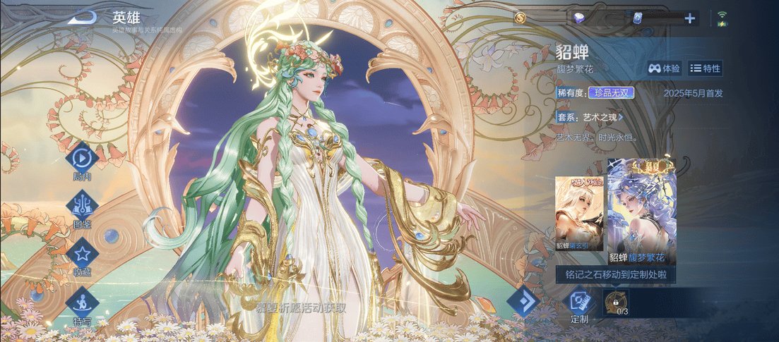 皮肤的详细设计,可通过点击皮肤页详情页左侧局内或皮肤动画按钮,观看皮肤视频,更加直观的查看皮肤背景、角色、特效等设计细节,预览皮肤局内效果。