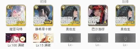 T1:奥伯龙12给提妈3给草十郎后换奥伯龙1,提妈3,草十郎12后宝具,