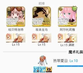 (以上配置需要一定补刀,能借到2宝以上C呆能缓解很多压力,或者是给主输出喂杯、宝具等级上弥补,或者适当5加成降配)