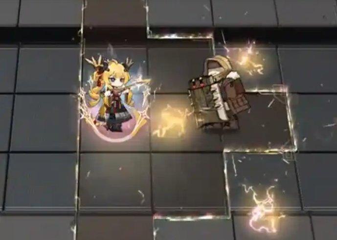 三技能:攻击范围扩大,攻击间隔延长,攻击造成攻击力一定比例的范围物理伤害,目标位置产生朝四周流动三格的电流。电流碰到自身或高台时反弹,电流所在地块上所有敌人每0.6秒受到司霆惊蛰攻击力一定比例的法术伤害,且有一定概率战栗数秒。