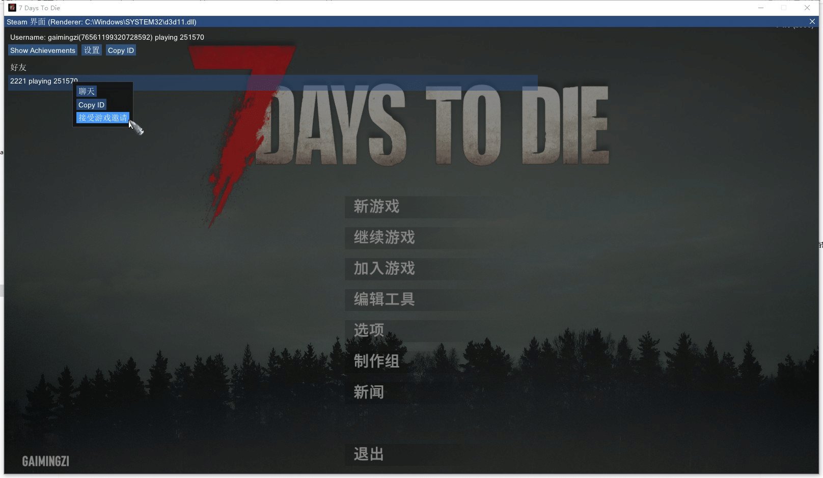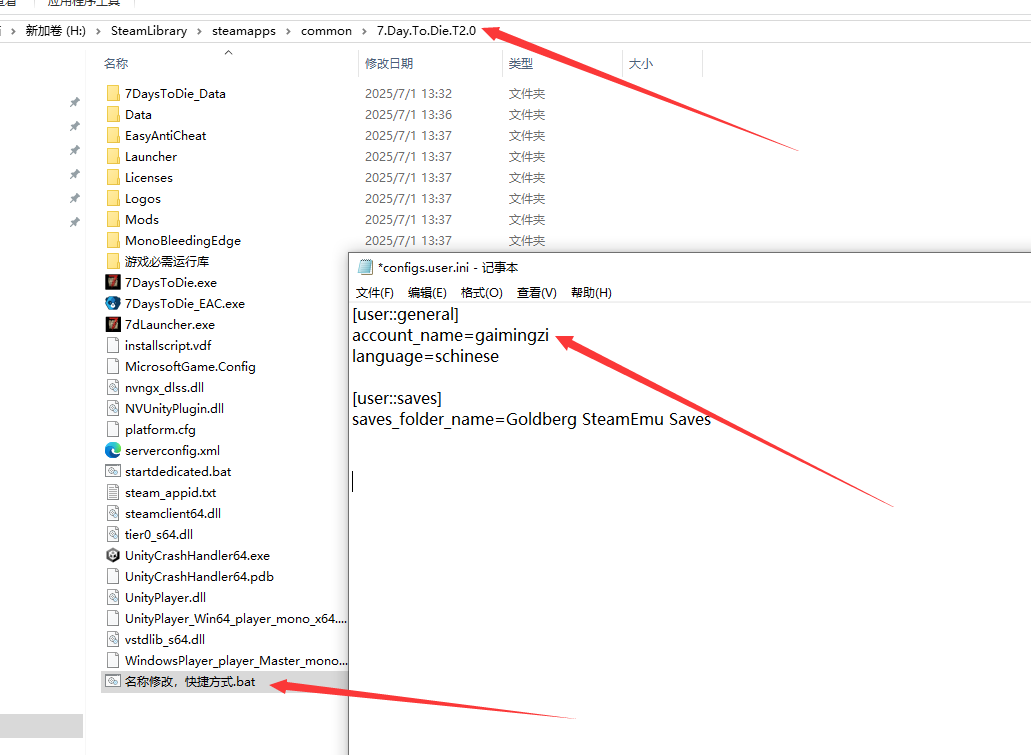 七日杀V2.0正式版改名字方法游戏改名字,有时候进主机会提示你名字一样,那就需要改名字了。