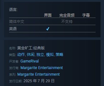 而另一则让人疑惑的点是在这个新发行商,前面也介绍了《黄金矿工》原始的发行商是Game Rival,但是steam商店里却成了Margarite,如果真是想靠情怀捞一笔,怎么想这钱也得是自己全全照收,实在是让人很好奇这个新发行商在打什么算盘。
