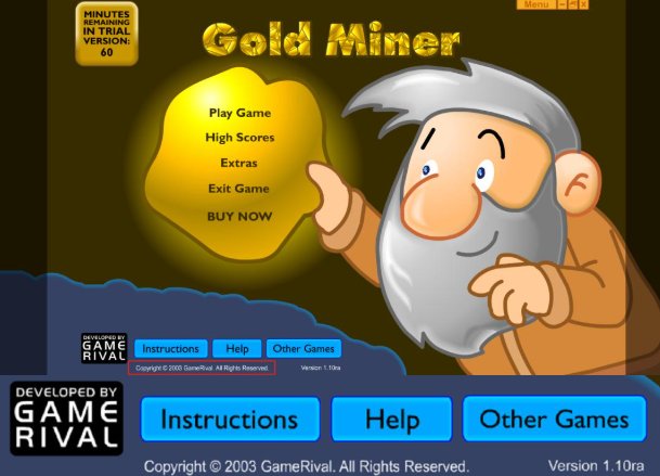 而在真正的原版中,不仅有作者的版权说明,道具和关卡也比我们玩到的那版更丰富,相信很多人都不知道这游戏不仅仅只有抓矿石这一种赚钱手法,还可以通过老虎机凭运气赚钱。