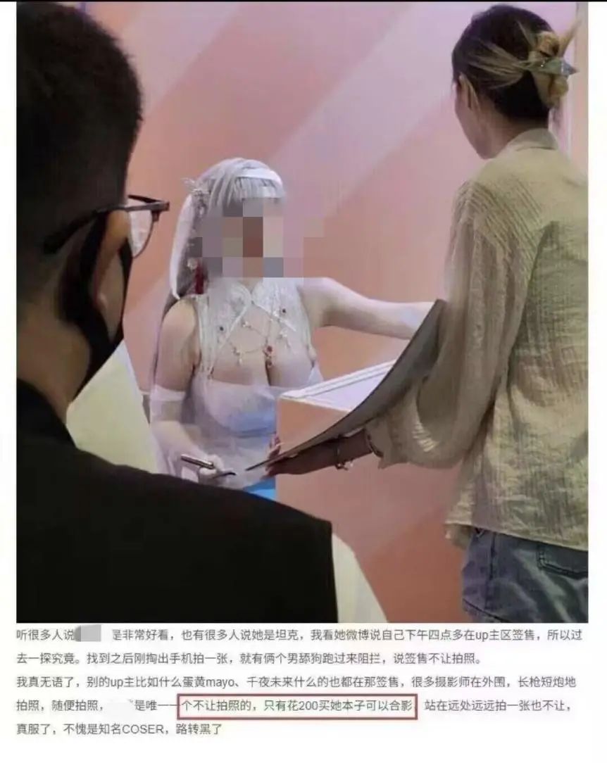 而且,国内的某些Coser们(不是指全部)还有非常不好的习惯,就比如有在自己账号下面训龟的。还有嫌粉丝线下爆米,门票钱自己收不到,于是自己办线下见面会的(也有粉丝认为,见面会不用线下排队,是好事)。据说BW当天有的Coser还不让拍照,除非你花钱买亲签才可以合照(这个我没去求证,所以可能是谣言)
