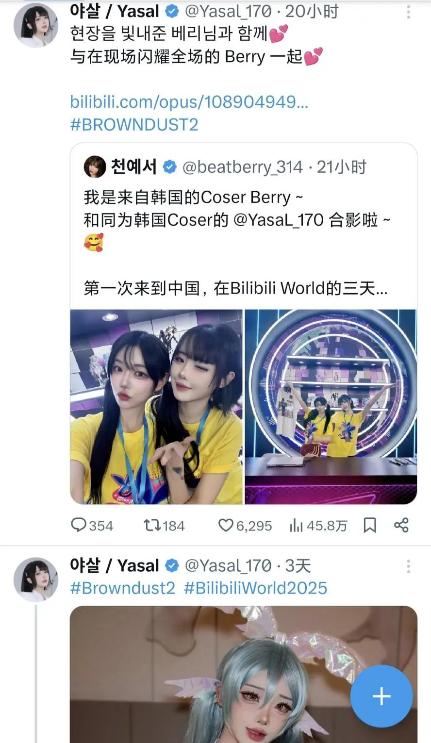 简单来说,两位韩国来的两位外援Coser小姐姐,直接实现了对国内Coser们的降维打击,成了本次展会的最大赢家。而且其中一位只是开号和两条介绍视频,目前就飙升到了40多万粉丝(目前还在快速涨),靠涨粉就窜上了B站的热搜。