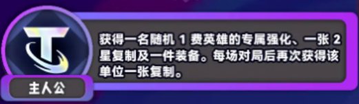 获得一名随机1费英雄的专属强化、一张2星复制及一件装备。每场对局后再次获得该单位一张复制。
