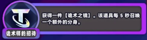 获得一件【诡术之镜】。该道具每5秒召唤一个额外的分身。